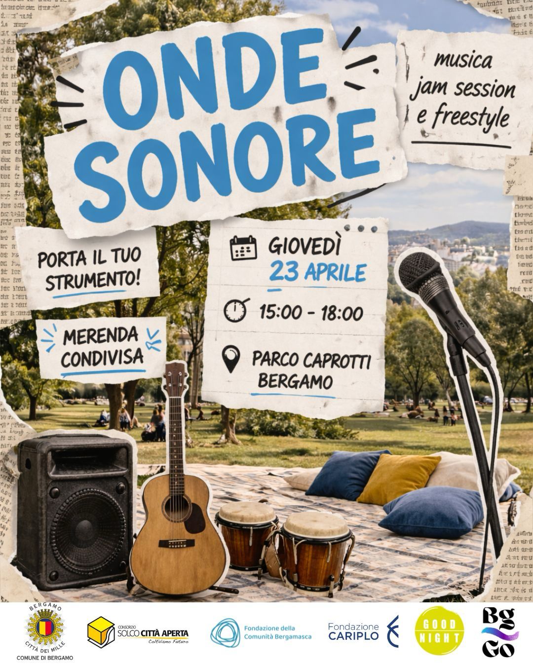 Il parco Caprotti di Bergamo ospiterà "Onde Sonore", un pomeriggio aperto alla cittadinanza dedicato alla musica, alla socialità e all’incontro tra giovani negli spazi pubblici della città.